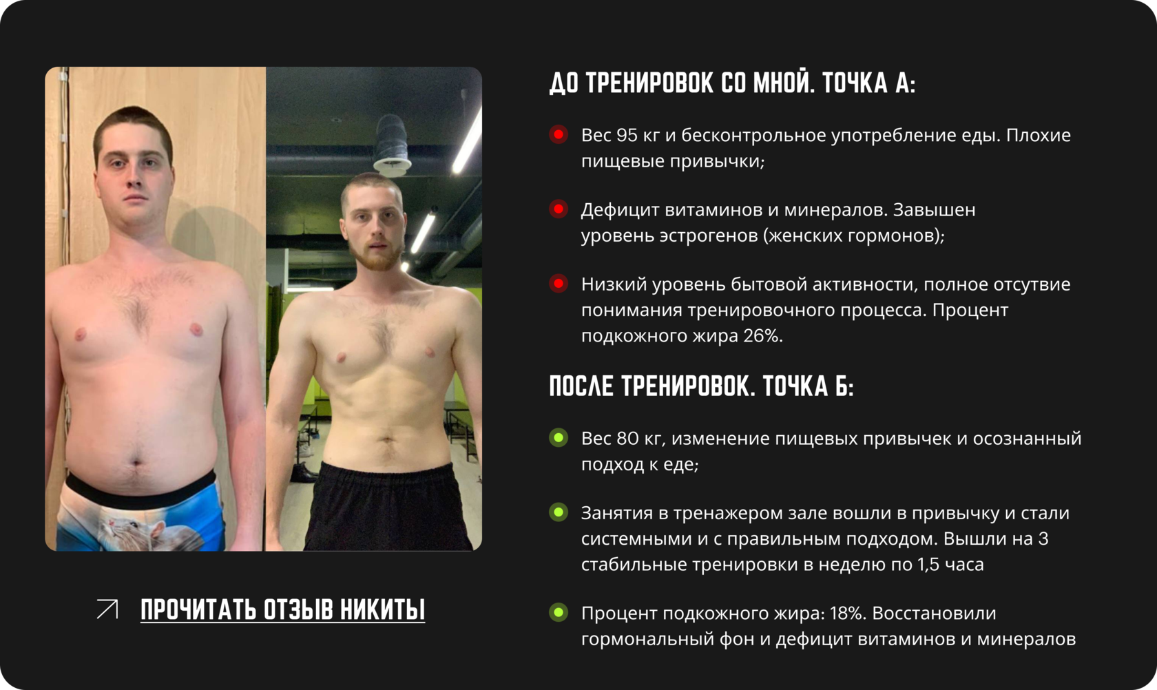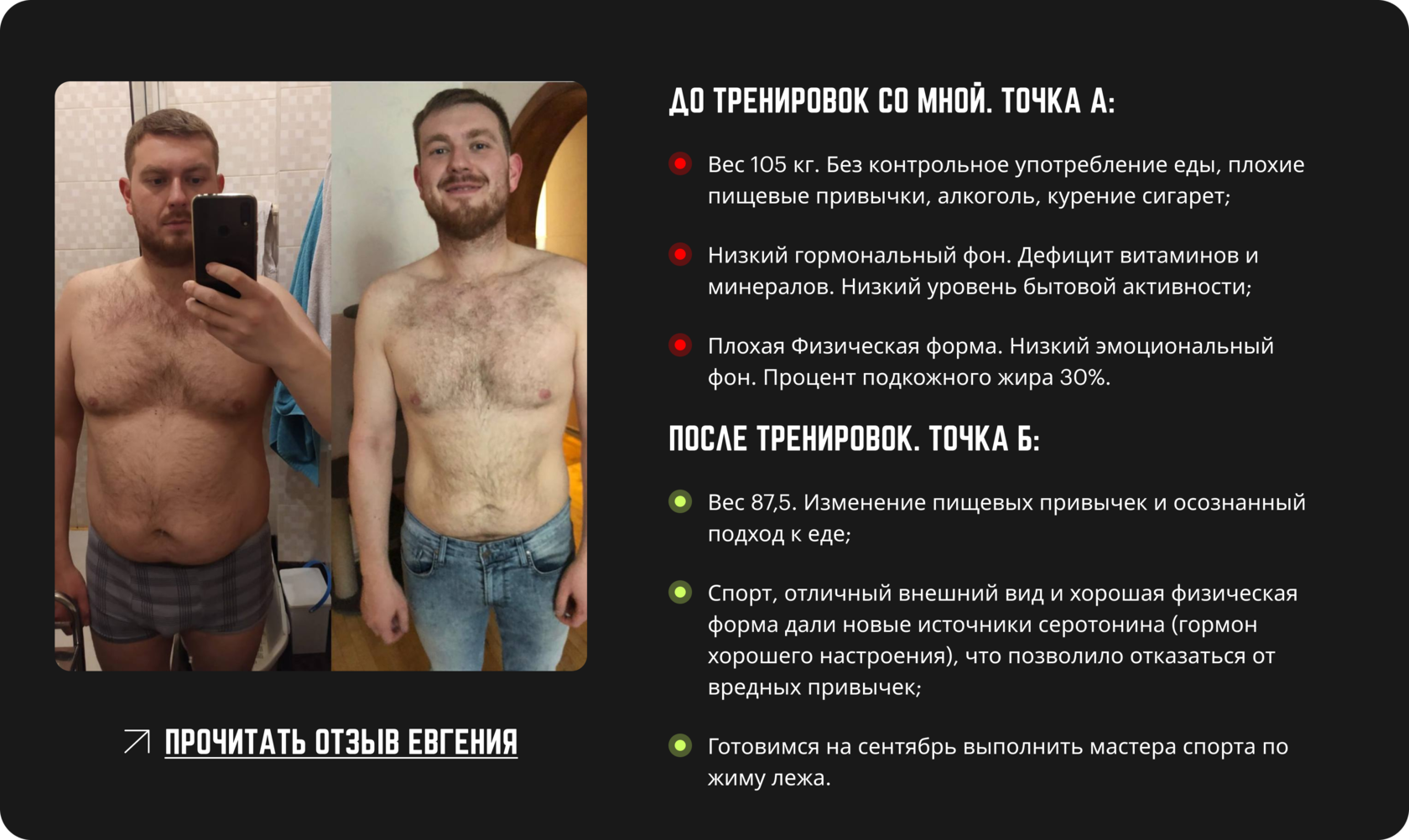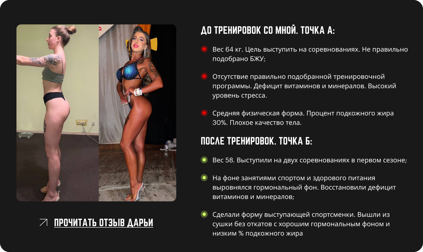 Я прохожу все те же этапы, что и люди занимающиеся по моим программам. Поэтому более 500 обученных мною клиентов уже получили желаемый результат