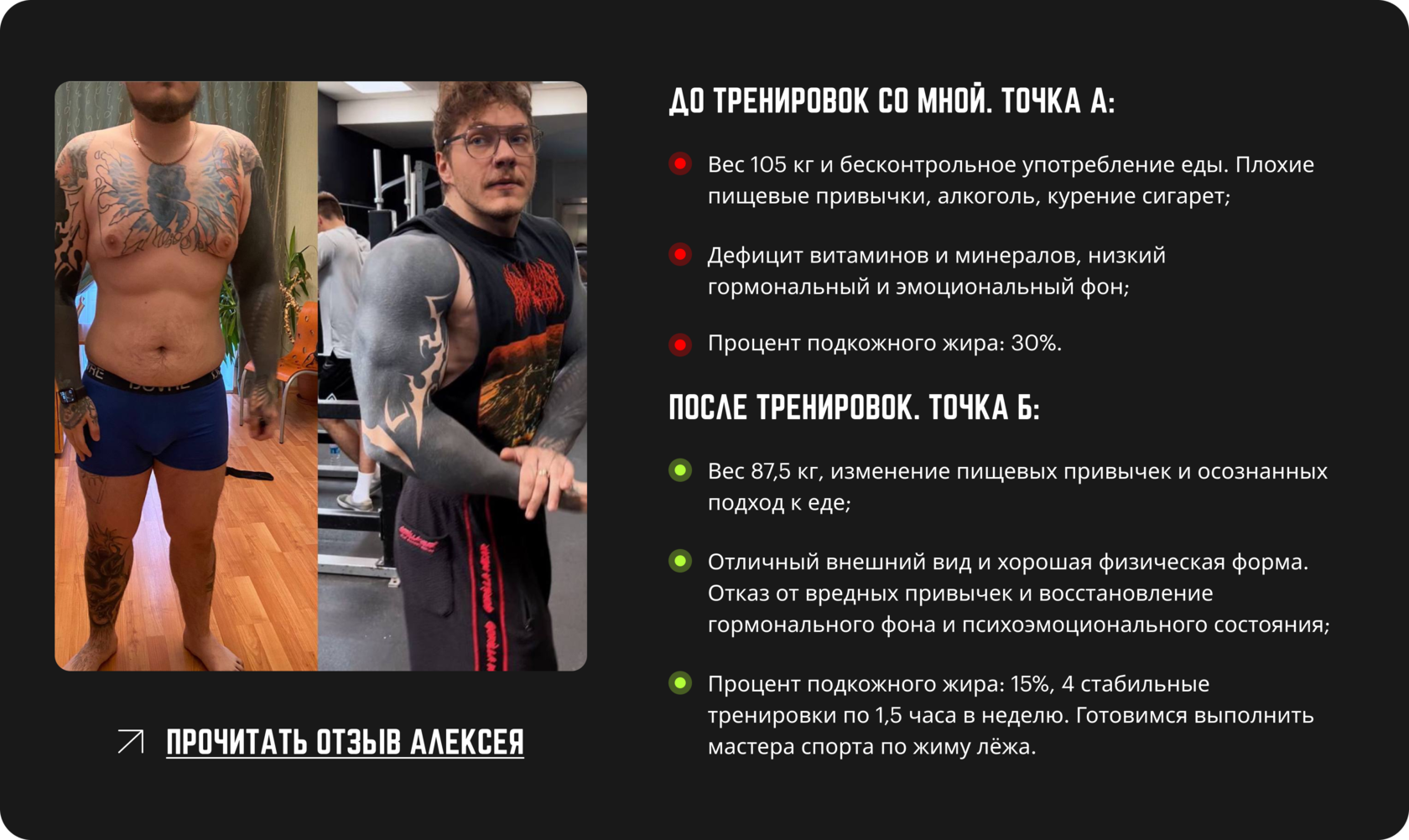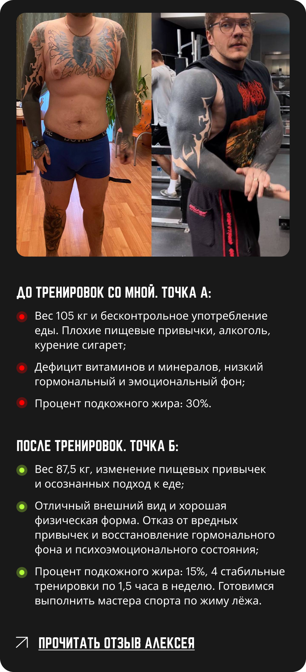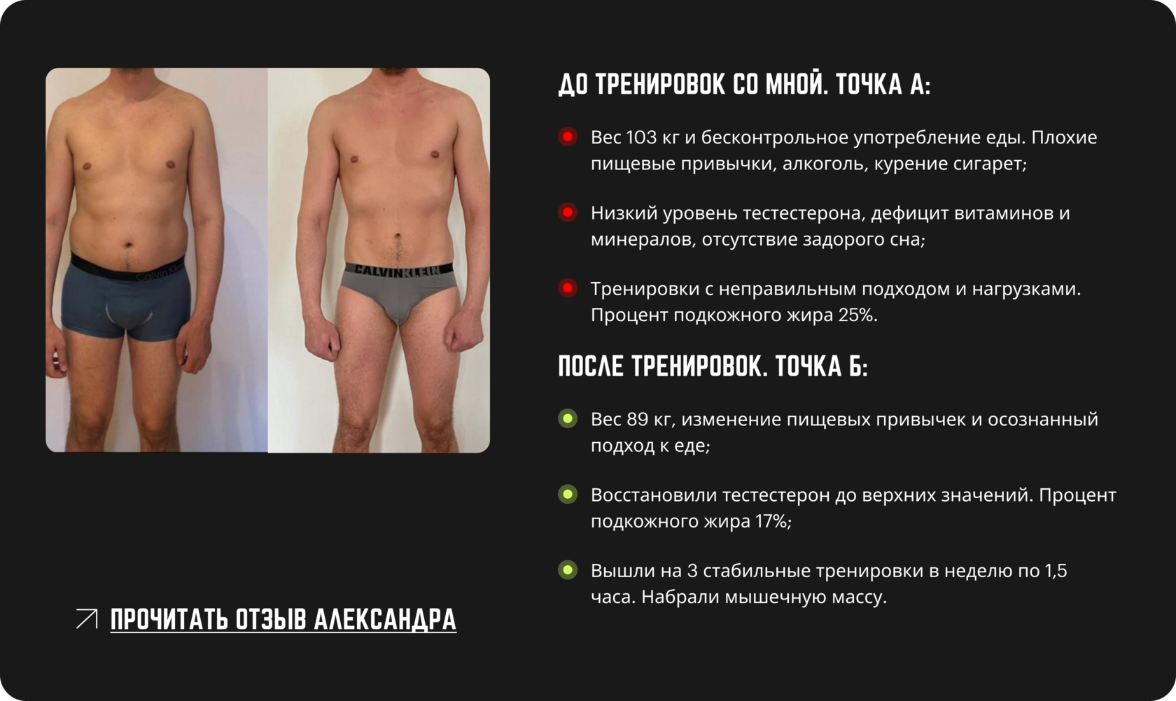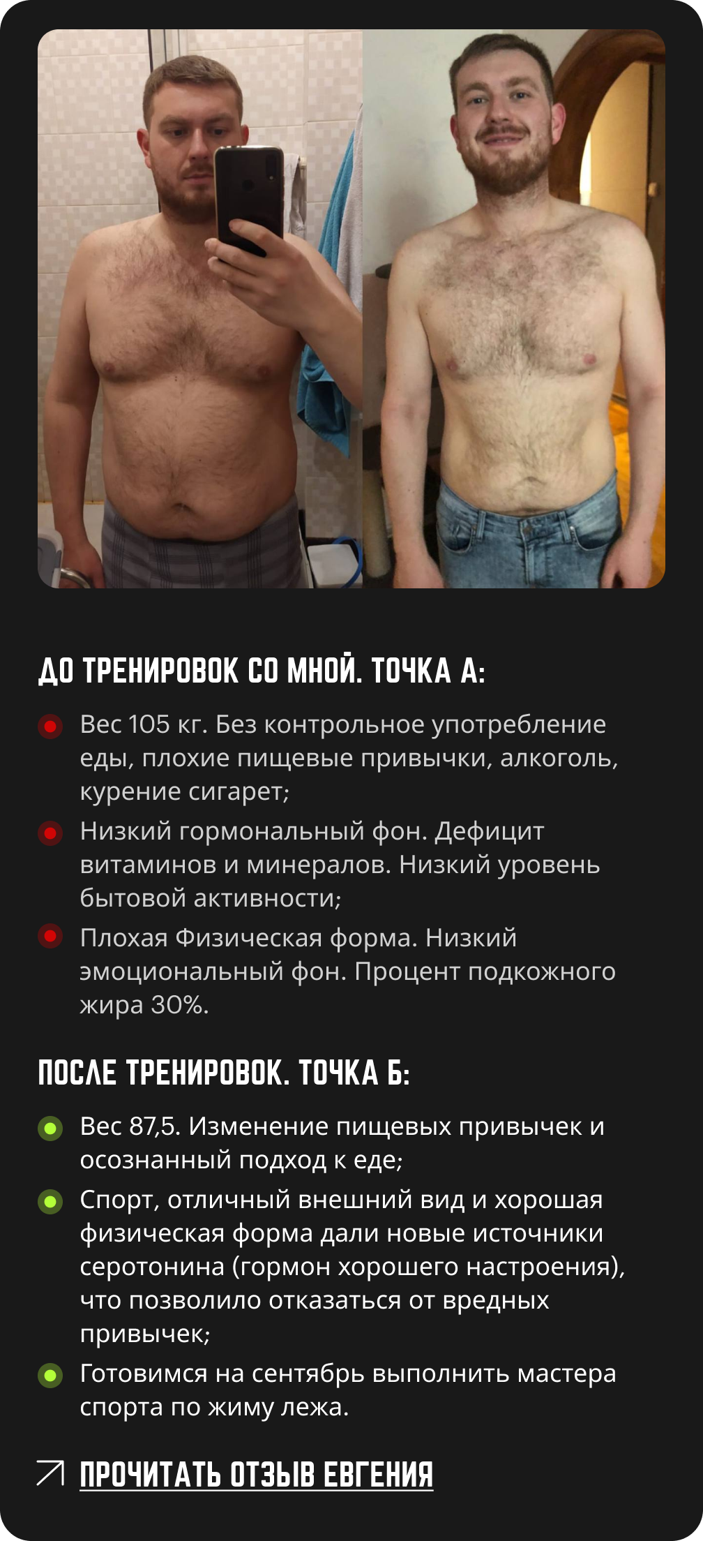 Я прохожу все те же этапы, что и люди занимающиеся по моим программам. Поэтому более 500 обученных мною клиентов уже получили желаемый результат